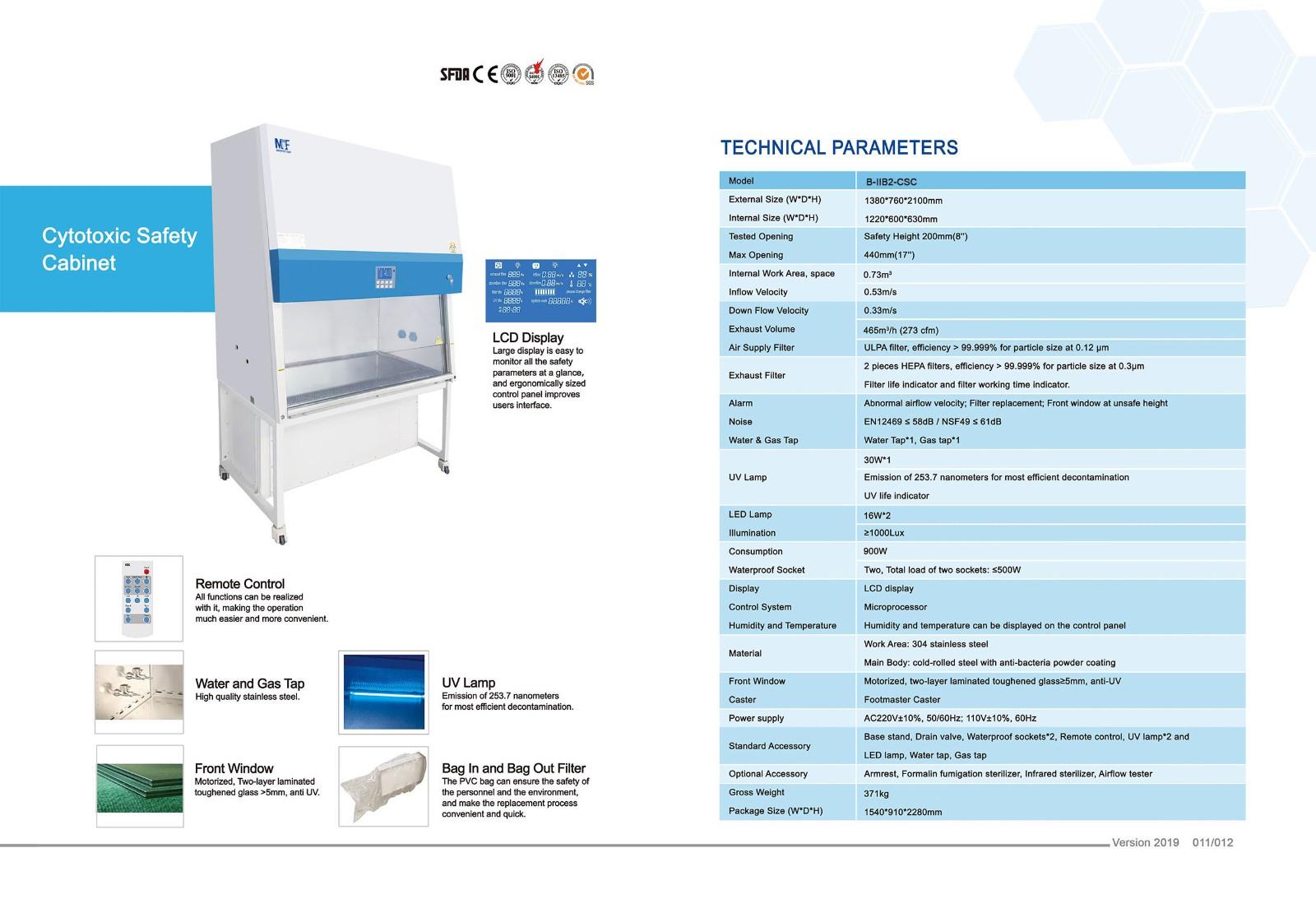 2pieces ULPA filters, efficiency>99.9995% for particle size at 0.12 μm. Fiter life indicator and filter working time indicator. |