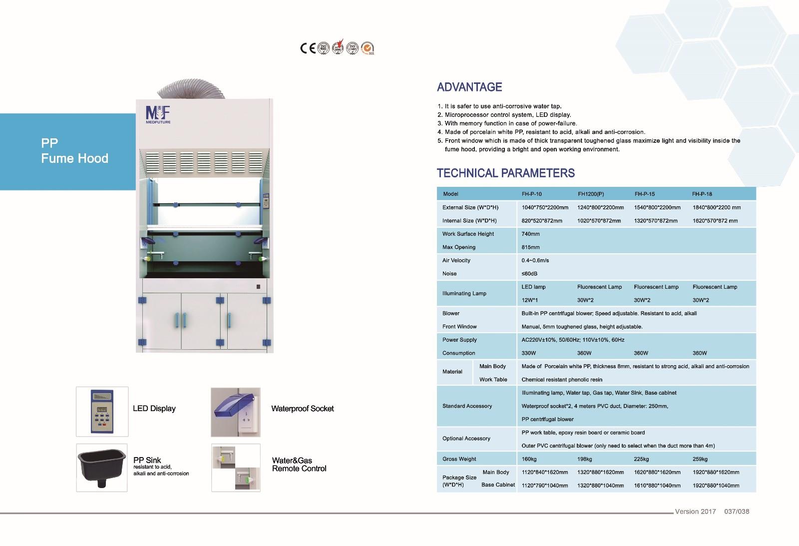 Built-in axial flow blower; Speed adjustable. Resistant to acid, alkali |