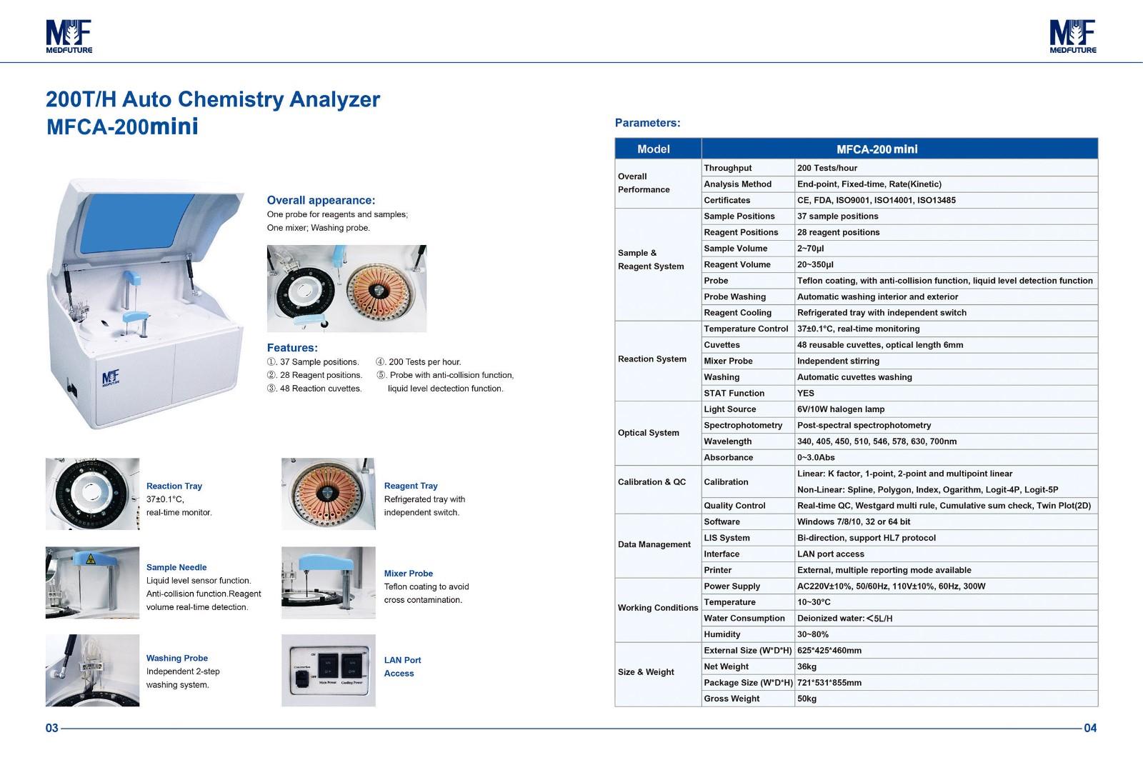 One probe for reagents and sample;One mixer;Washing probe.